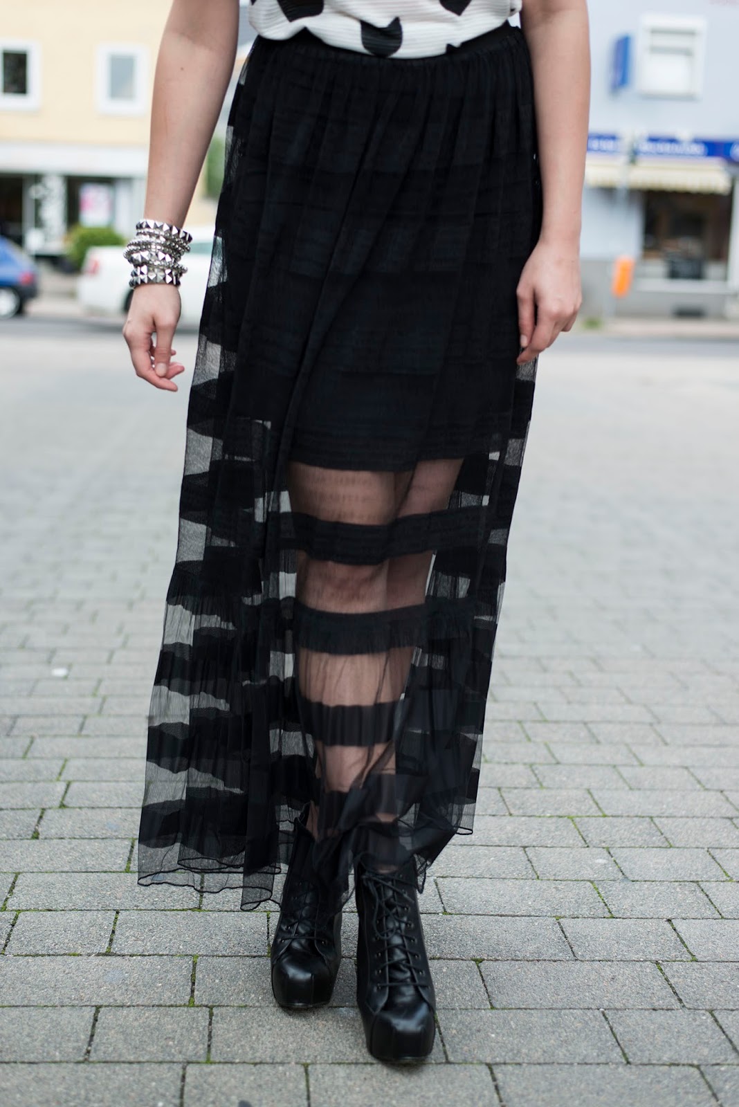 Shirt, Skirt, Hat: H&M, Boots, Bracelets: Primark