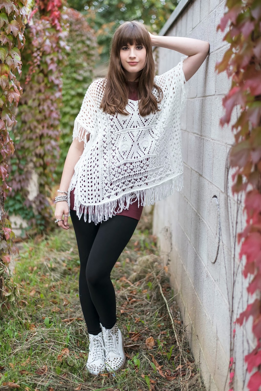 Poncho: H&M, Top: American Apparel, Leggings: Gina Tricot, Rings: H&M, Bracelets: Primark, Boots: Bronx
