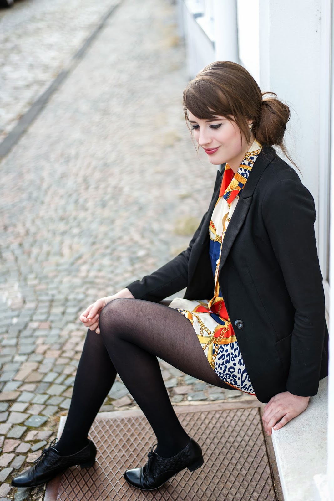 Shirt dress: Asos, Blazer: New Yorker, Tights: Primark, Earrings: Gina Tricot