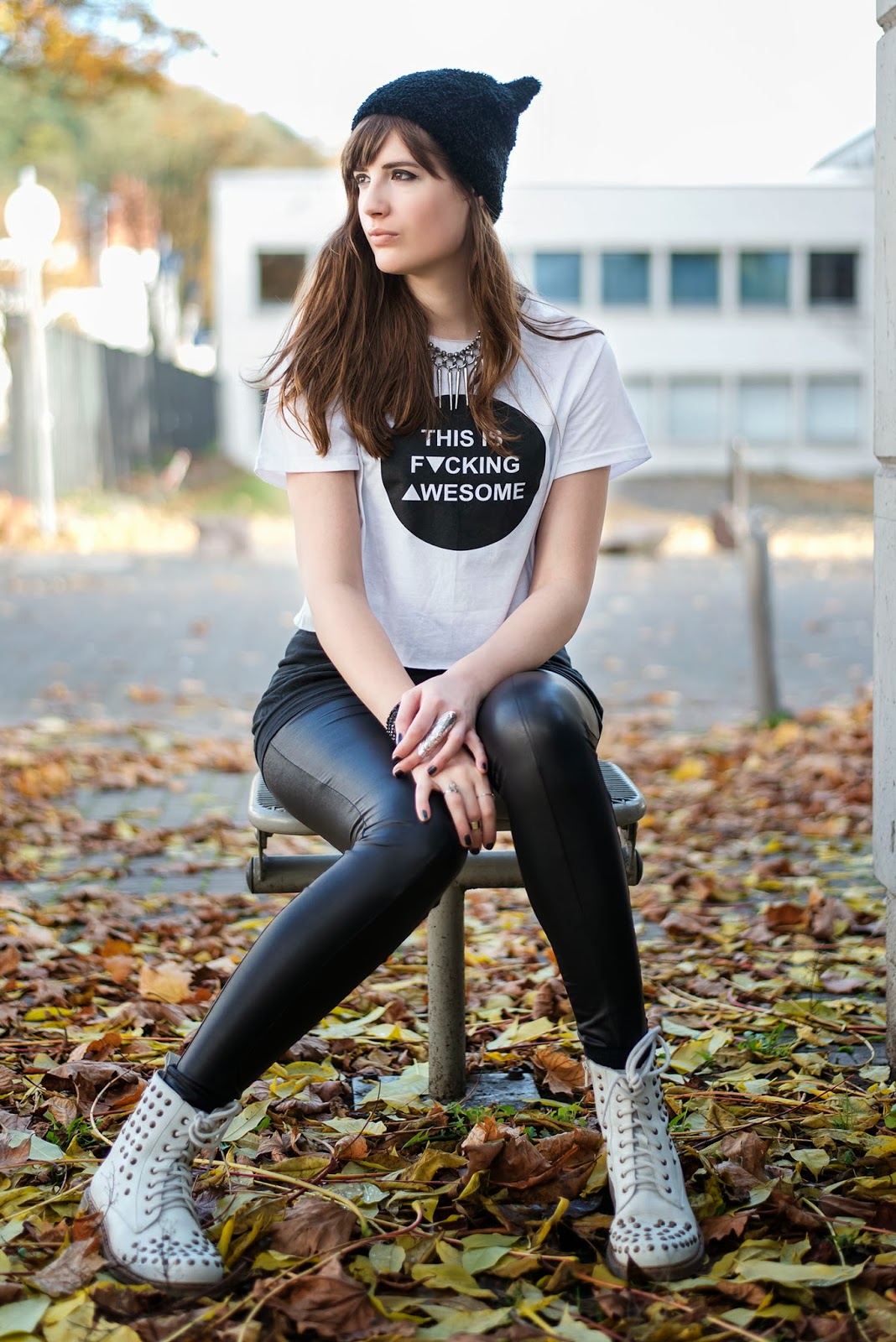 Wow, your outfit is so awesome! I love the leather leggings, I need to shop from ASOS too! I've been curbing my online spending lately so I haven't even let myself look at such sites but after the holidays maybe I'll start haha. Also adore that tee and the beanie!