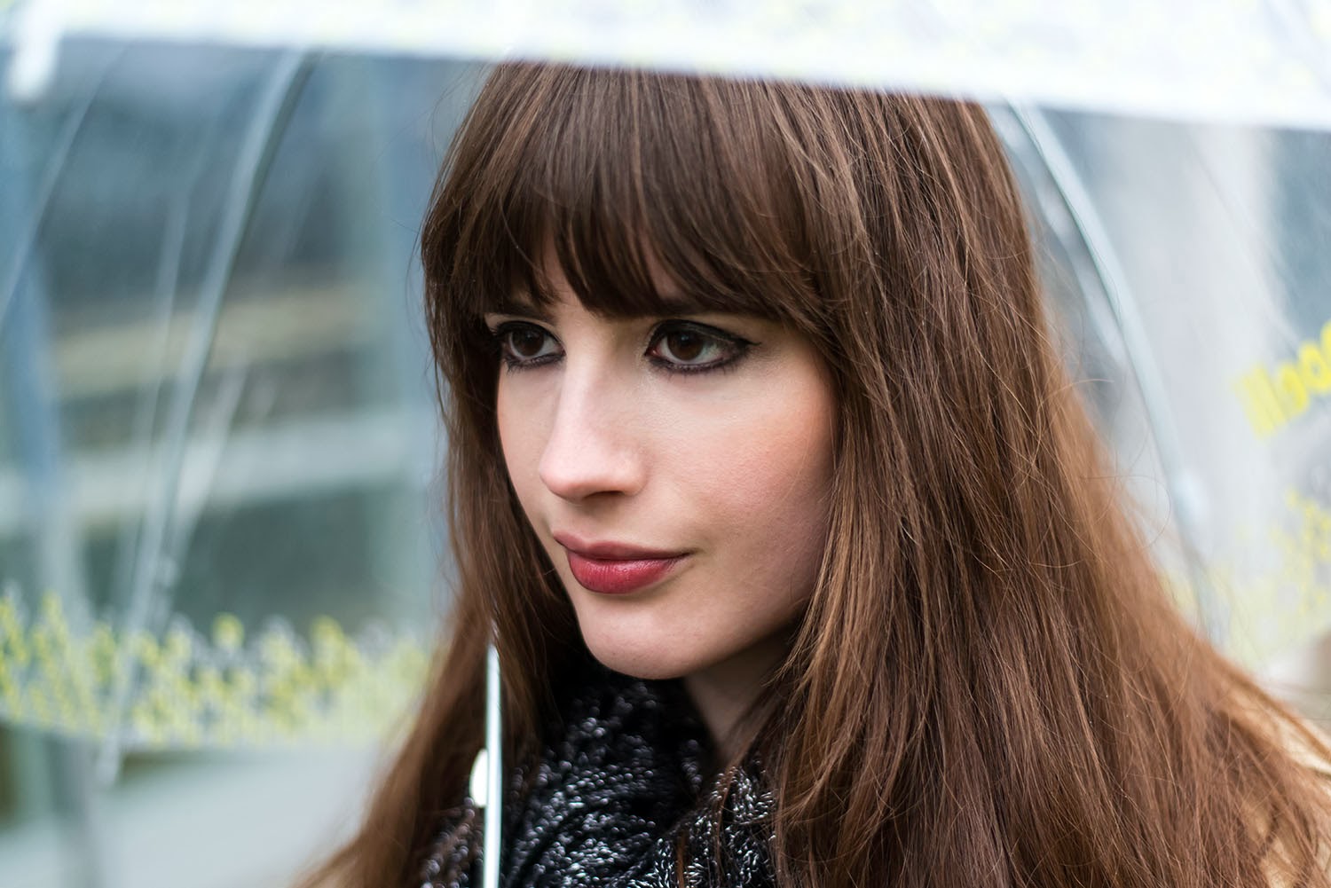 irgendwie musste ich sofort an "ein hut, ein stock, ein reeegeenschirm … " denken. kennst du das kinderspiel? 😀 so durchsichtige regenschirme sind echt cool, wenn man bei regen sieht, wie die tropfen darauf prasseln. du bist so wunderschön geschminkt!