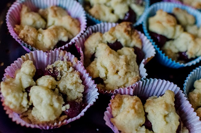 Süßigkeiten kann ich zwar jetzt nach der Weihnachts(fr)esserei zwar nicht mehr sehen, aber ich glaube, für diese Leckereien hätte ich bestimmt noch Platz 🙂 Sie sehen himmlisch aus und einen Crumble wollte ich schon immer mal probieren 🙂 da würden sich diese Crumble Muffins doch sehr gut eignen 🙂 wobei ich die Kirschen, glaube ich, mit Blaubeeren austauschen würde 🙂