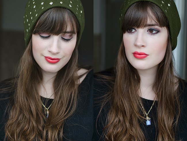 Der Lippenstift und auch die dunkelgrüne Mütze stehen dir total.