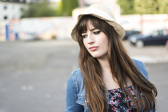 Maxikleid und Jeansjacke haben mich ebenfalls überzeugt! Beides passt wie angegossen. Die Jeansjacke wäre mir im Laden selbst nicht aufgefallen, weil sie sehr schlicht ist. Angezogen ist sie allerdings ein Traum – die Ärmel sind so schön weich, wie ein Pullover. Gar nicht so grob wie das sonst oft bei Jeansjacken der Fall ist! Das Maxikleid hat abnehmbare Spaghettiträger, kann also auch als Bandeaukleid getragen werden. Zum Outfit hat sie Riemchensandalen und einen Sommerschal empfohlen. Ich habe mich stattdessen für einen Hut und meine Plateausandaletten entschieden.