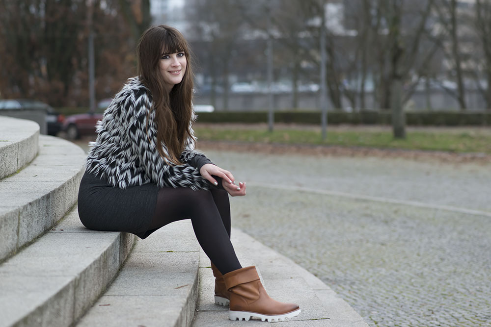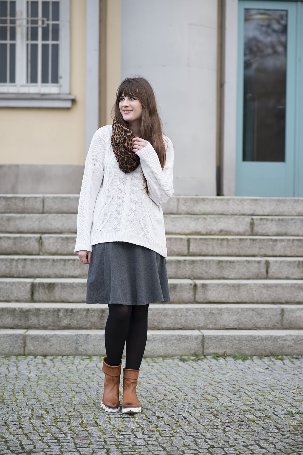 Der erste Look ist für den Alltag mit Pullover, grauem Rock und Leo-Schal, weiter gehts mit dem schicken, schlichten roten Kleid von H&M und dem grauen Kapuzencardigan. Zum Schluss wird es glamourös mit der Felljacke – auch von H&M! Welches Outfit ist euer Favorit? Ich habe noch ein kleines Video mit Christine gedreht – schaut mal rein: