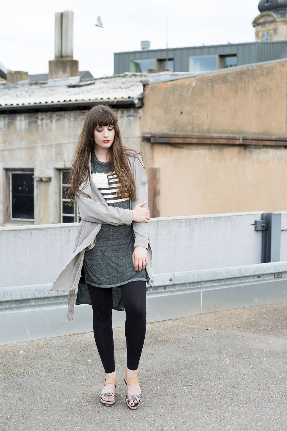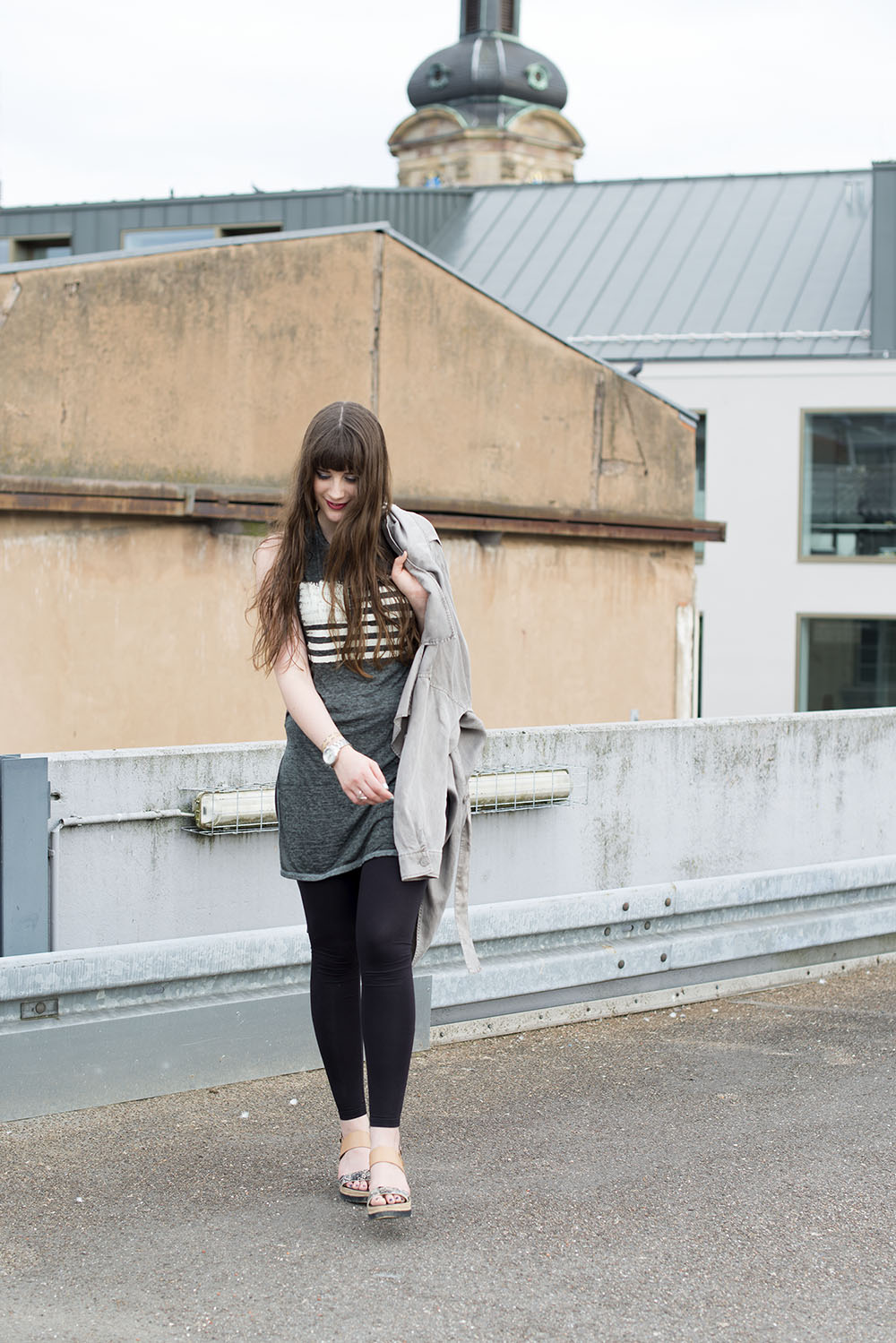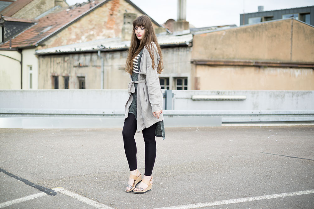 Das Wetter spielt verrückt aktuell, mein Outfit auch: Hippie-Sandaletten von Tamaris, extra-lange Leggings, T-Shirt-Kleid und der Trenchcoat im Boyfriend-Stil von Promod. Ich genieße sogar die aktuelle Abkühlung, bevor es wieder richtig heiß wird in der kommenden Woche. Wie findet ihr diese Kombi?