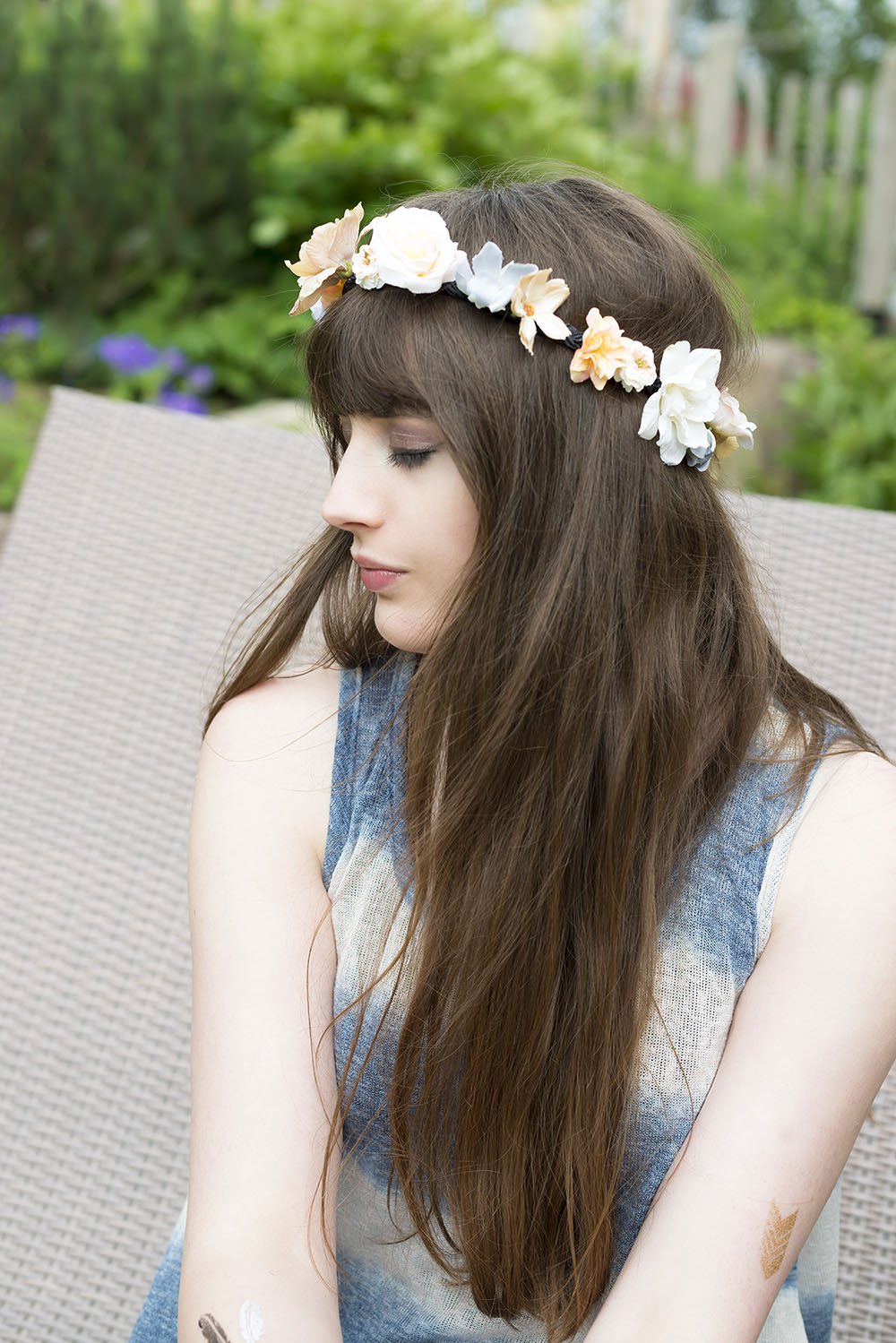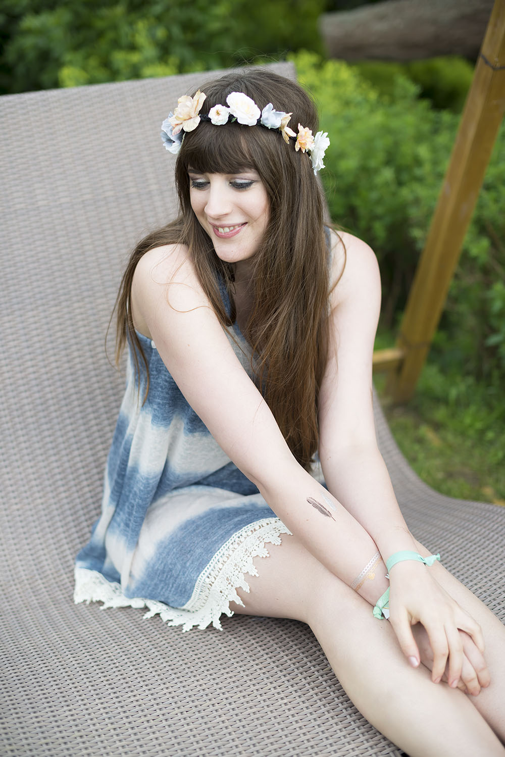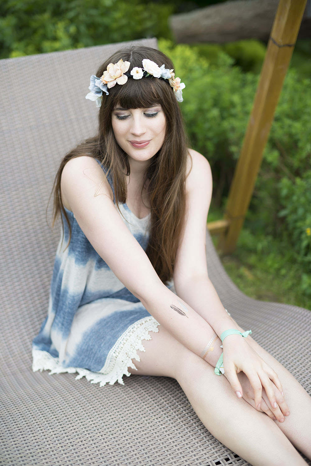 Der Blumenkranz steht dir so gut! Ich liebe die Metallic Tattoos! 🙂