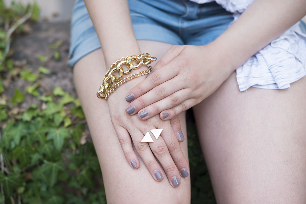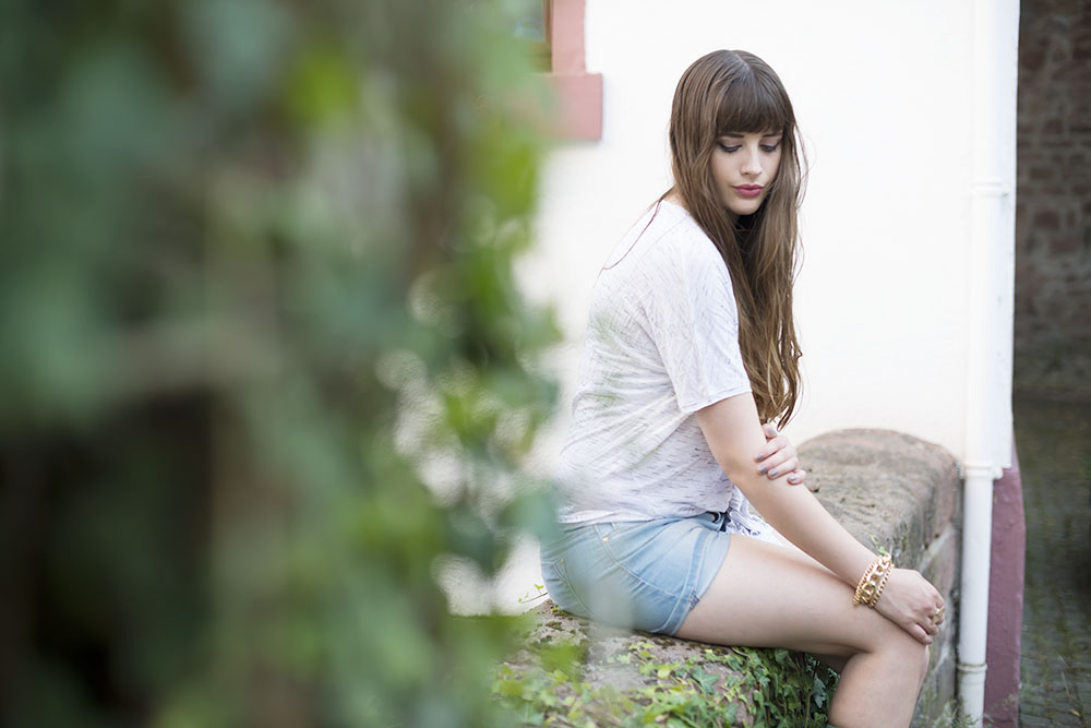 Mein Top ist ein sehr extravagant geschnittenes Shirt von Light Before Dark via Urban Outfitters – der Grund, warum es in meinem Kleiderschrank verstaubt ist. Ich habe jetzt diese asymmetrischen Enden einfach zusammengebunden und trage es als lockeres Shirt über meinen Denim Shorts.