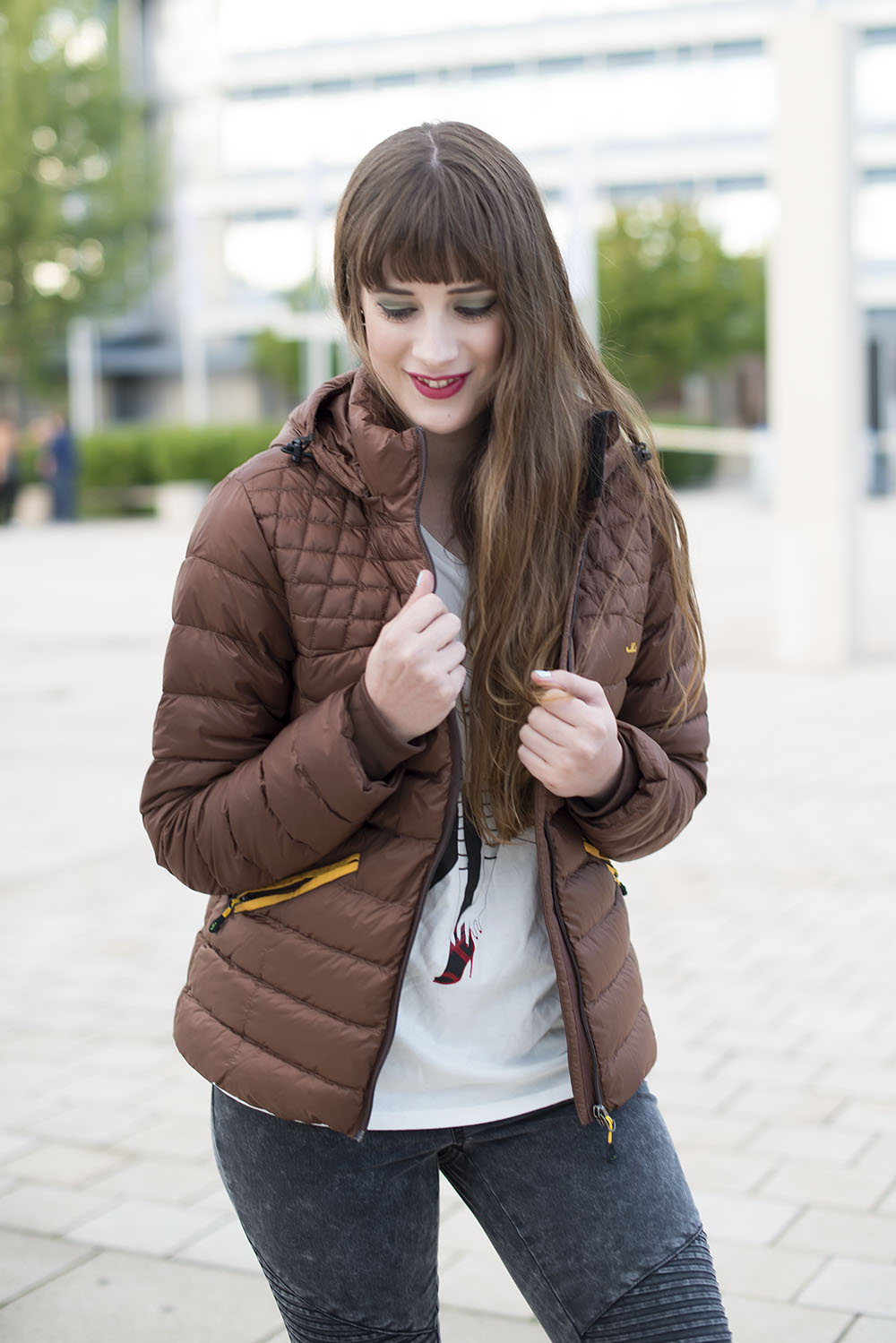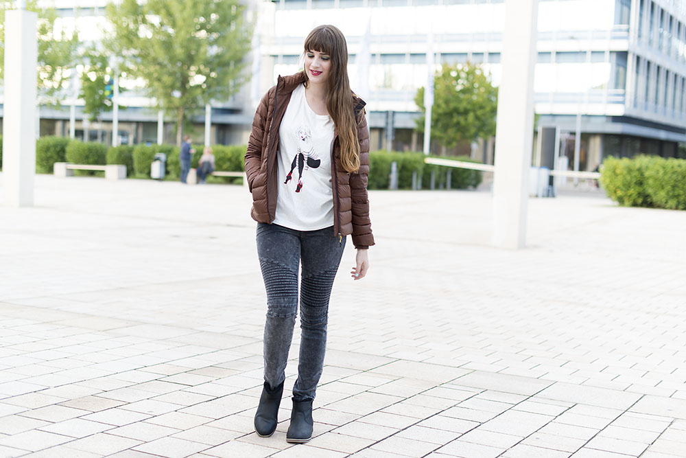 EN: The duvet jacket by Jeff Green is so perfect for autumn temperatures – not too warm, but definitely warm enough. I don’t want to wear black all the time, so I chose chocolate brown. The rest of the outfit is comfy and perfect for long walks: A t-shirt from Promod and biker jeggings. The Emu Australia boots – beach minis – are so cozy, I almost don’t want to wear anything else in autumn and winter!