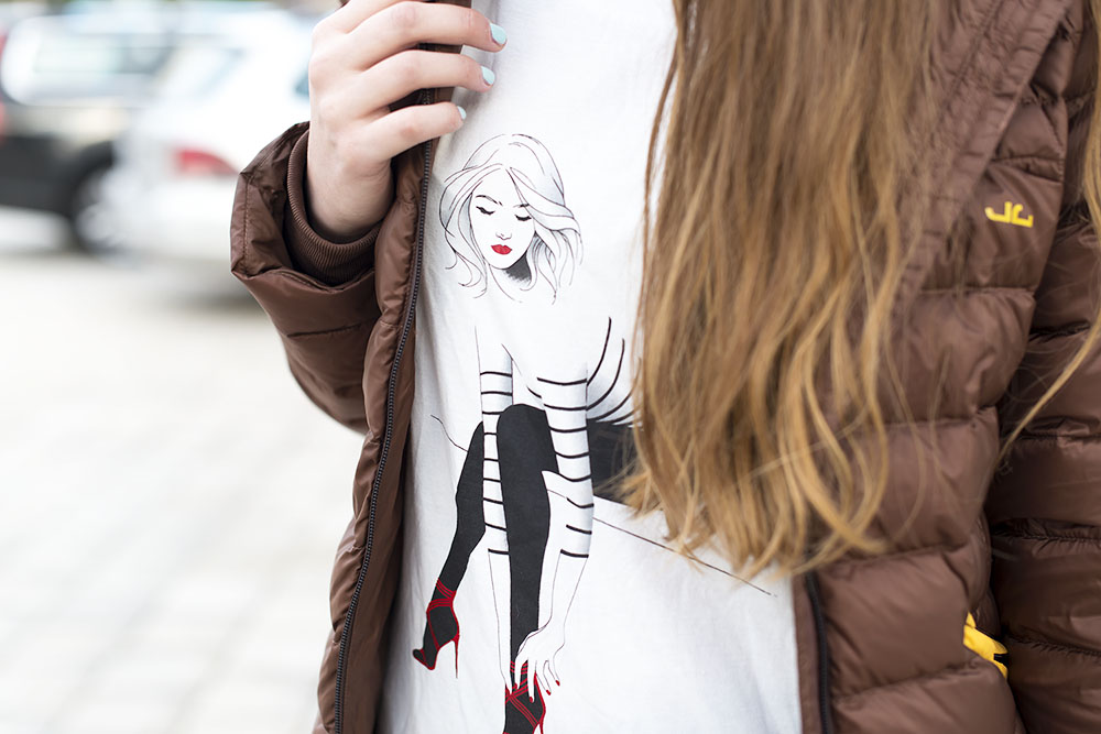 Der Rest des Outfits ist klassisch und auch für längere Spaziergänge geeignet: Ein T-Shirt von Promod mit einer Illustration von Clément Dezelus sowie meine Biker Jeggings von OTTO. Die gab es schon im letzten Look zu sehen! Die Kollektion ist im August bei Promod erschienen und ich zeige euch demnächst noch einen Look mit einem wundervollen Sweater daraus. Ich mag die Illustrationen sehr gerne!
