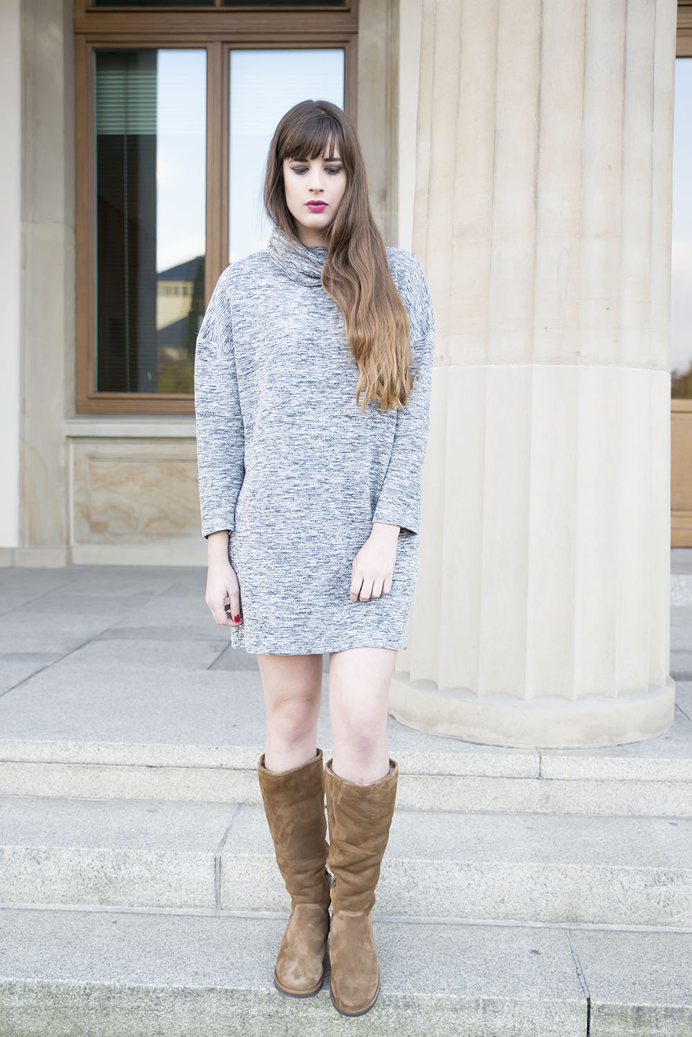 Grobstrick angesagt. Ich habe mich für ein graues Pulloverkleid von